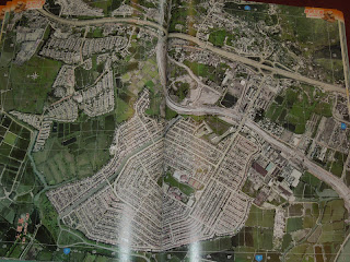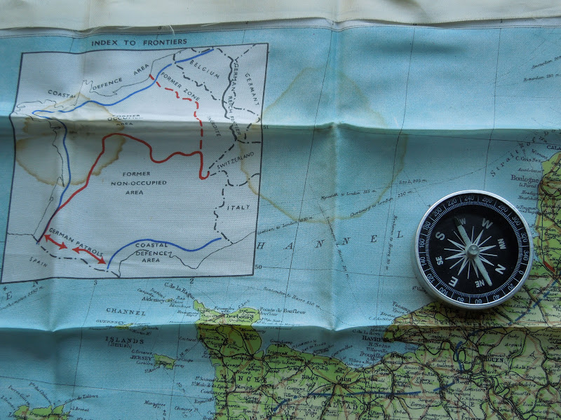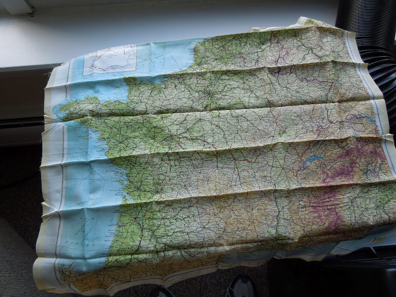 In the midst of my most recent spatial learning curve, a colleague here brought in some family items to show me. They were silk maps used by paratroopers during WWII. They were given these maps and a compass. I had never thought about the challenge of navigation in these conditions and the tools that might have been provided. Within my mother's lifetime (actually within my lifetime) we have gone from orienting ourselves with the use of printed maps and compasses to looking at an individual streets using satellite images, navigating by using GPS, and downloading directions using mapquest.