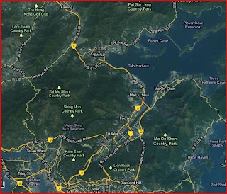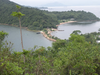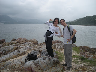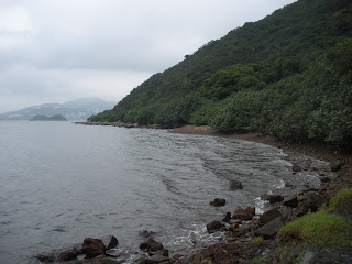 On Sunday afternoon we went on a hike organized by Raymond and Polly. The northeast side of the Kowloon Peninsula is a Geopark. Raymond and Polly had wanted to take us to a particular trail in the Geopark. From the village of Sam Mun Tsai New village, you have to walk along a path through the village and then up along a ridge outward along the peninsula. This peninsula has many grave sites along the hills. And off to one side is a large dam that creates the Plover Cove Reservoir.