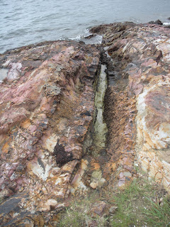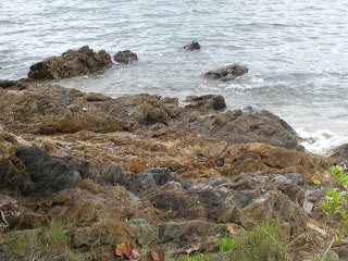 This is one of the few places in Hong Kong where you can see sedimentary rocks, but there has also been folding and faulting in the area so they don't lay horizontally. Typical is to see the effects of differential erosion, there the softer rocks have eroded away, leaving ridge of the harder rocks.
