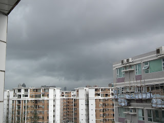 This is the process that causes the rainfall to increase over the summer in Hong Kong (pink bars). January through April are actually quite dry, but once the ITCZ starts to move north, the rains (and typhoons) come with it. Besides the high humidity--rarely below 80%--the temperatures do not drop at night time. The past few weeks, the lows have been around 28 degrees C (82 degrees F), with the highs around 33 C (91 F). The highs don't seem so bad, for someone who has grown up in the Midwest, except for the lack of cooling in the evening and the high humidity.