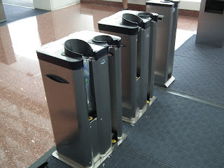 On the human behavior level, everyone carries their umbrellas and as you enter buildings, you are supposed to put your umbrella in a contraption that packages it in plastic to keep it from dripping on the floor. Always people are mopping up puddles along walkways, or just inside doors to keep everyone from slipping.
