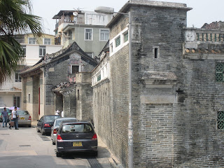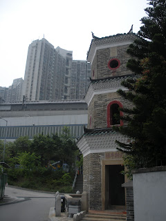 Discerning the cultural landscape layers underneath Hong Kong also takes work and imagination. The Ping Shan Heritage Trail helped give me some sense of the much earlier times. As with many former villages, the cultural landscape of this area is tied to one particular clan--the Tang clan. The trail is in the western part of the New Territories and begins at the Tin Shui Wai rail station. The first stop is the Tsui Sing Lau Pagoda which was built by Tang Yin-tung more than 600 years ago in the 7th generation of the Tang clan. Today the pagoda is dwarfed by high rises, but as recent as 1968 it was surrounded by rice fields and wetlands.